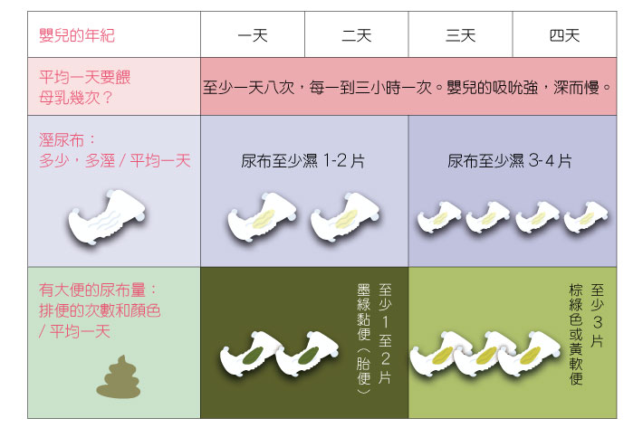 - 出生五天後的寶寶一天排尿少於六次,且顏色很深