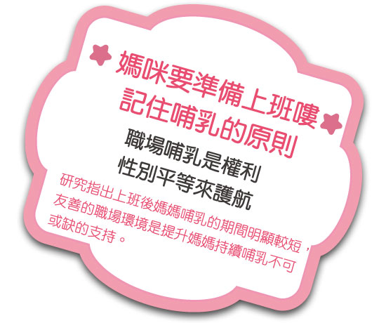 - 下班後直接哺乳,上班時以瓶餵或其他方式餵母乳